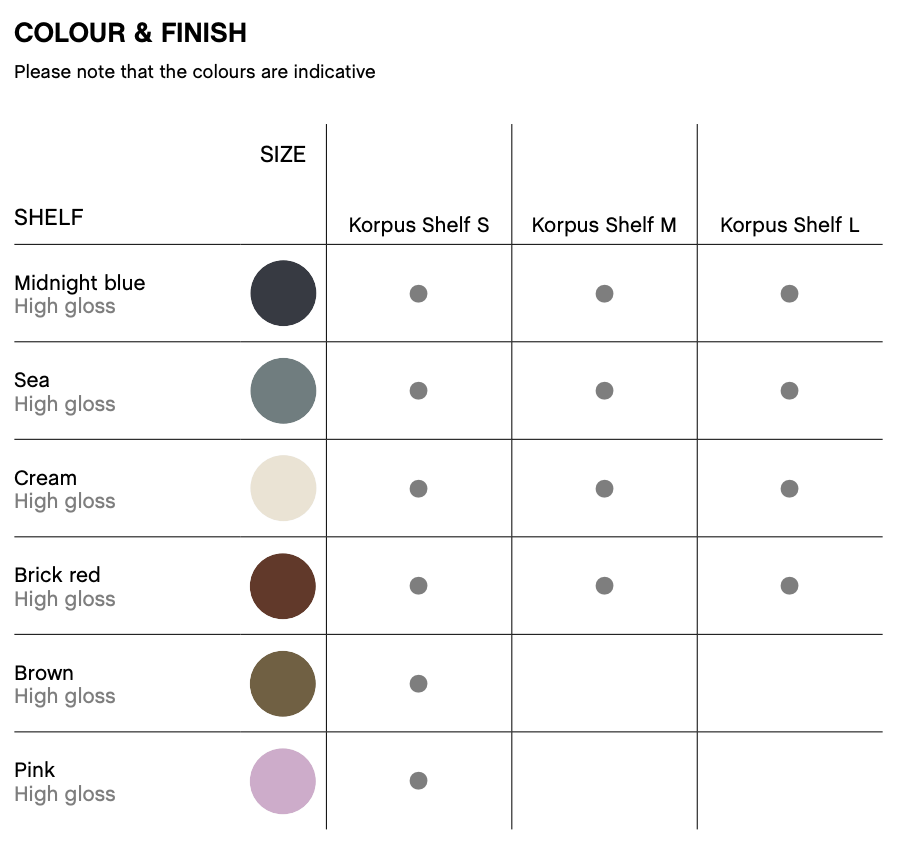 HAY Korpus on monikäyttöinen seinähylly, jossa yhdistyvät selkeä muotoilu ja integroitu ripustusratkaisu. Hyllyn rakenteeseen sisältyvät piilotetut koukut mahdollistavat sekä säilytyksen että ripustuksen samassa tuotteessa. Korpus soveltuu eteisiin, keittiöihin, kylpytiloihin sekä toimistoihin ja muihin julkisiin ympäristöihin. Hylly toimii esimerkiksi säilytystasona sekä takkien, pyyhkeiden tai muiden tarvikkeiden ripustamiseen.