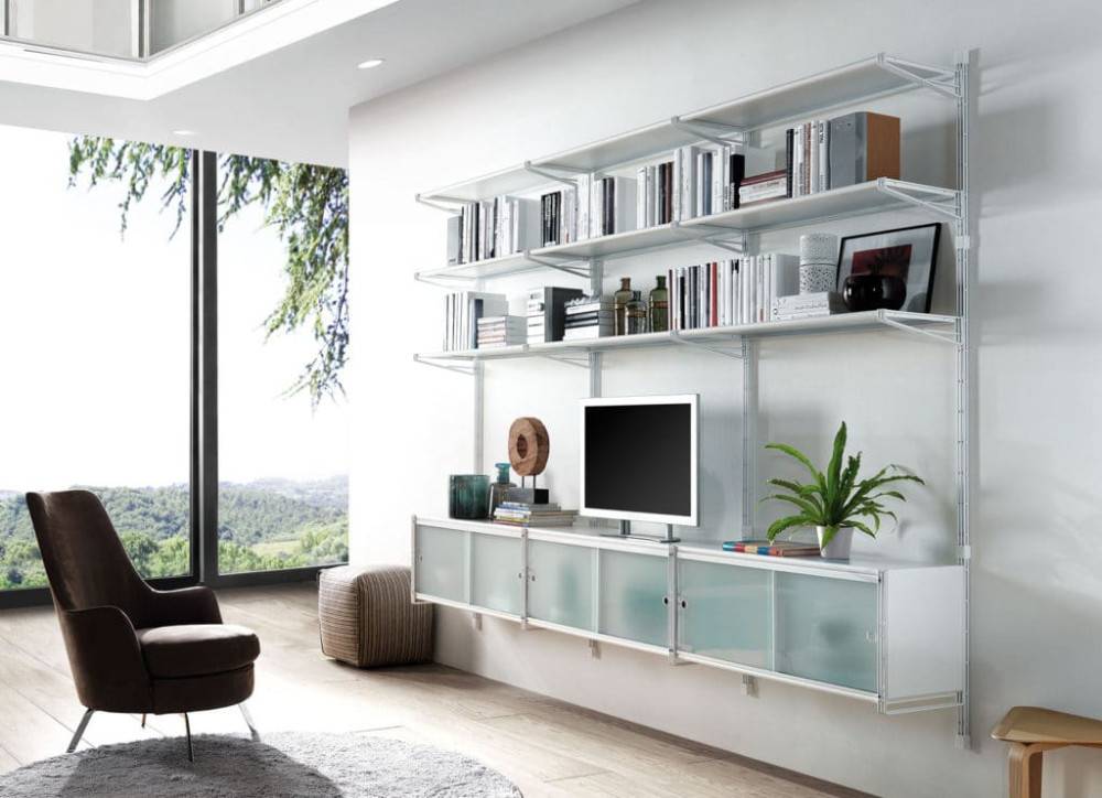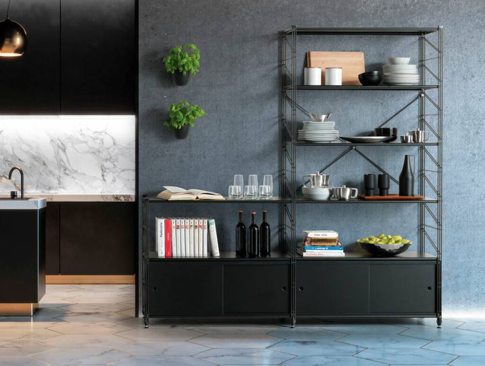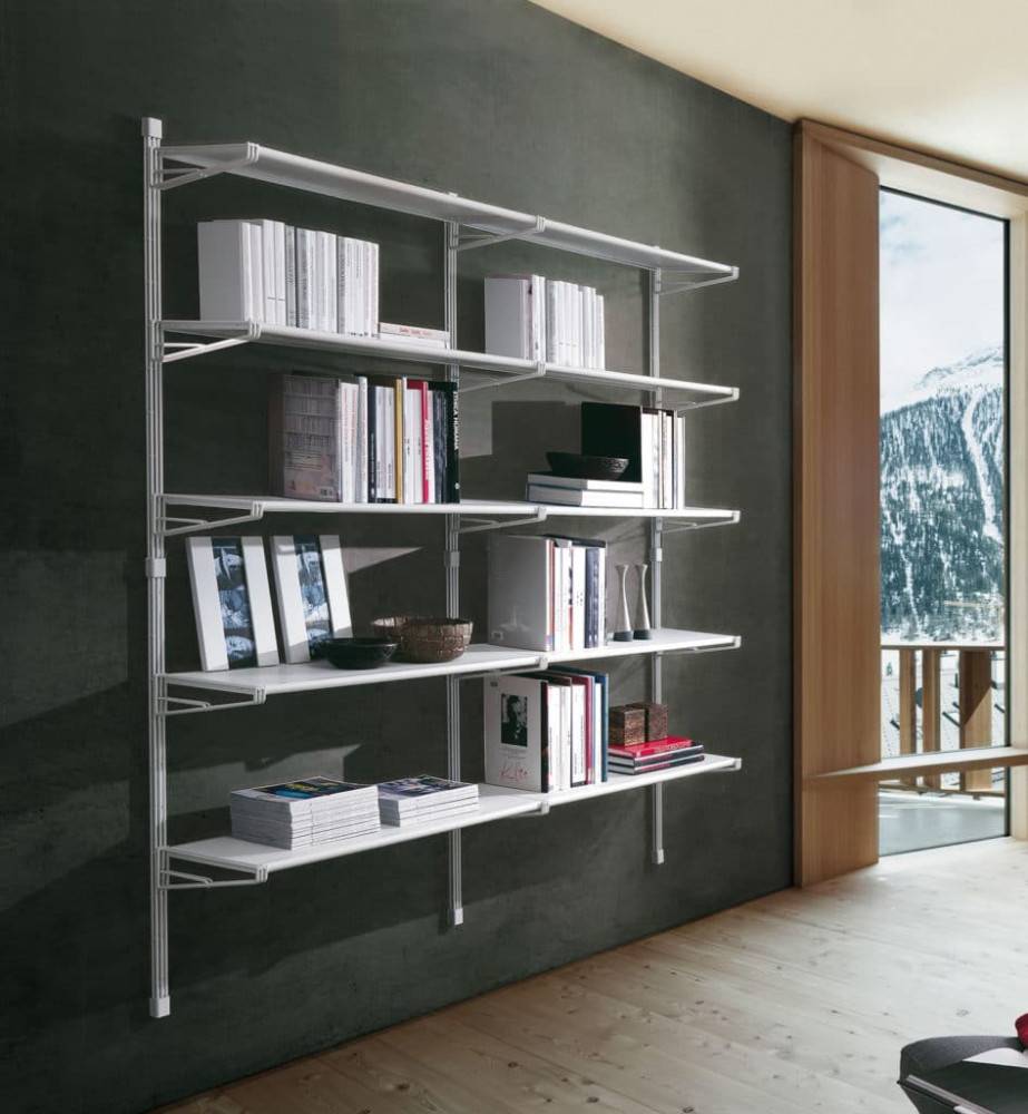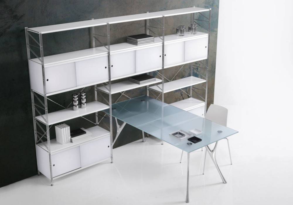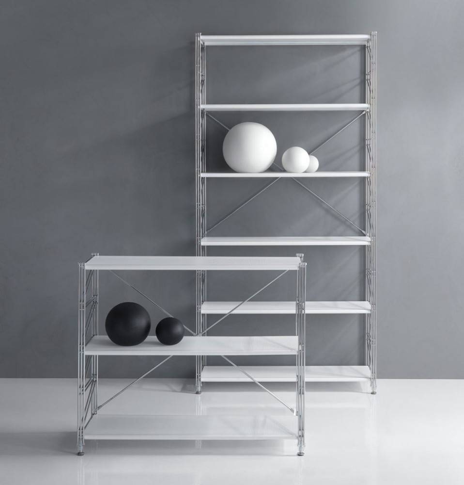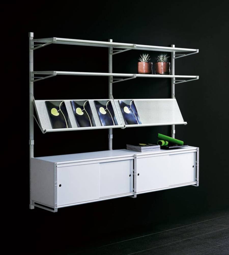 Modulaarinen Socrate metallihyllysarja on monipuolinen, joustava ja todella tyylikäs. Socrate hyllykköä saa vapaasti seisovana tai seinäkiinnitteisenä. Hyllyjä voi asentaa suoraan tai vinosti, materiaalina metalli, perforoitu metalli tai lasi. Sarjaan on saatava ovellisia liukuovikaappeja lasi- tai viiluovilla tai maalatuilla metalliovilla.