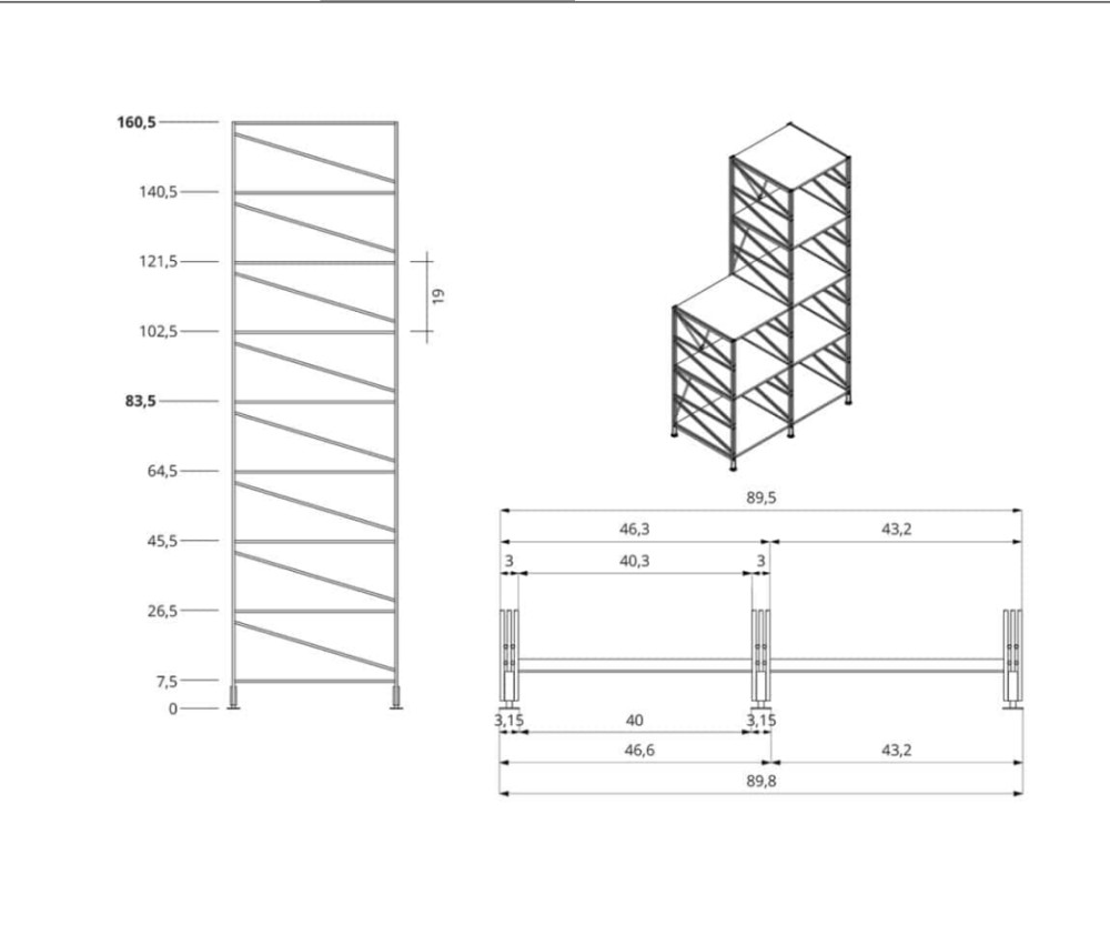 Esimerkkihinta on yhden hylllykön kokonaisuus, lev. 40, kork. 160,5, syv. 45 cm takaristikolla ja viidellä perushyllyllä.