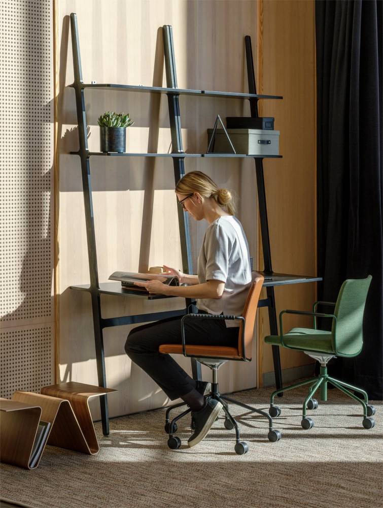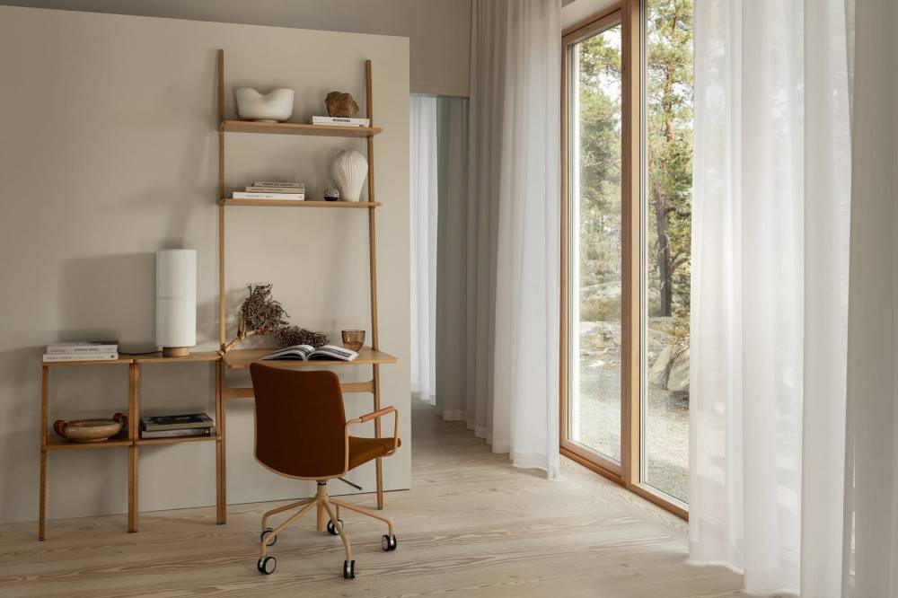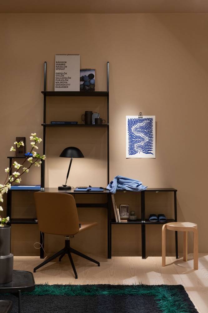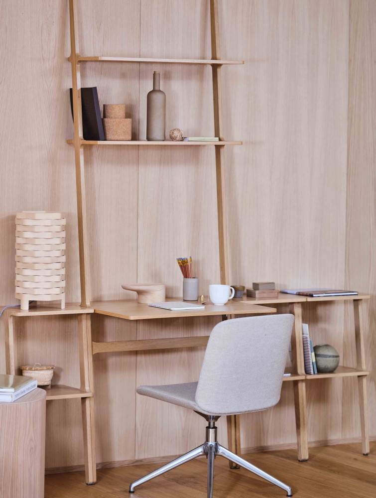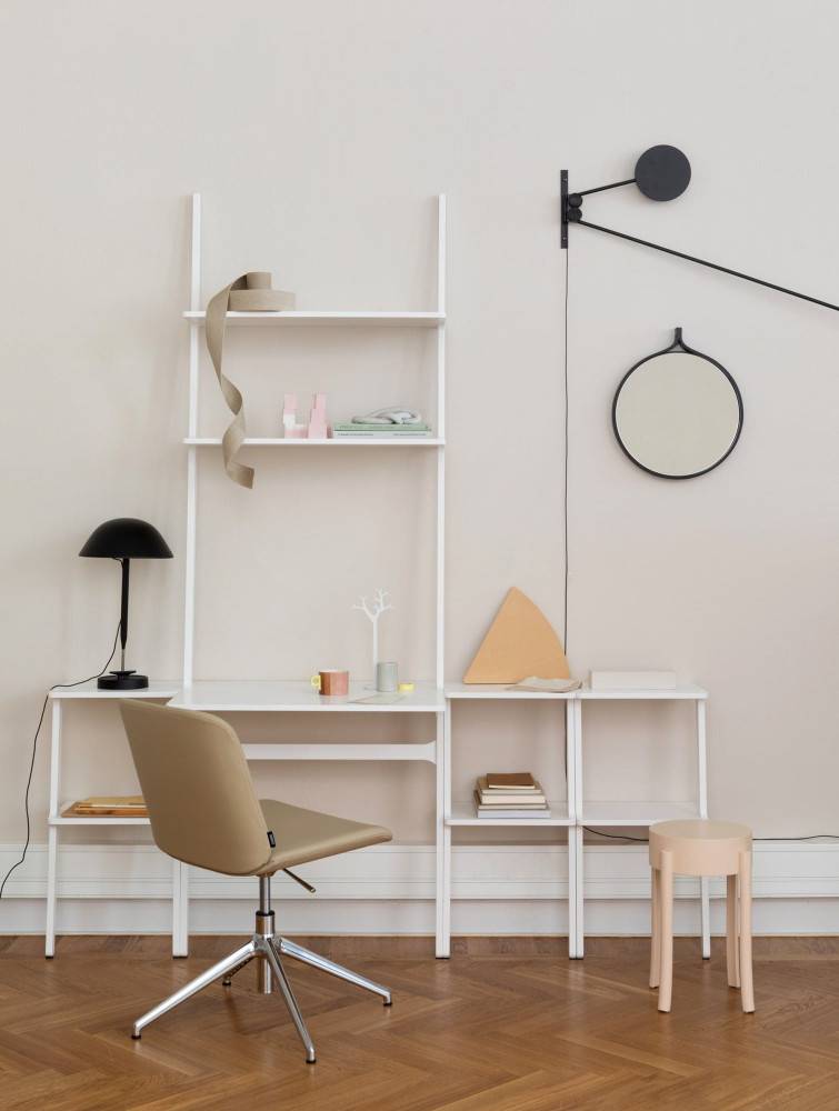 Libri-mallistoon kuuluu myös työpöytämalli, joka on suunniteltu kiinnitettäväksi seinään. Se on siro ja elegantti ratkaisu työpisteeksi, joka sulautuu osaksi Libri-hyllyjen kokonaisuutta.