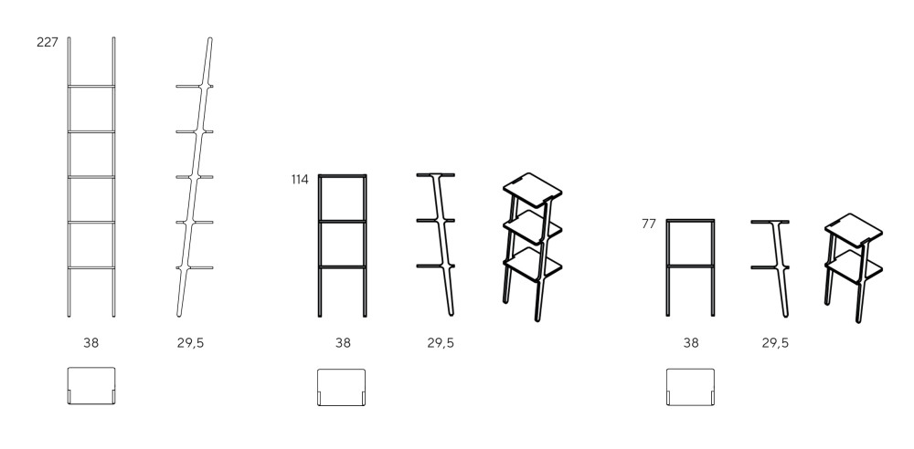 Hyllyn leveys on 38 cm, ja sitä on saatavana neljässä eri korkeudessa: