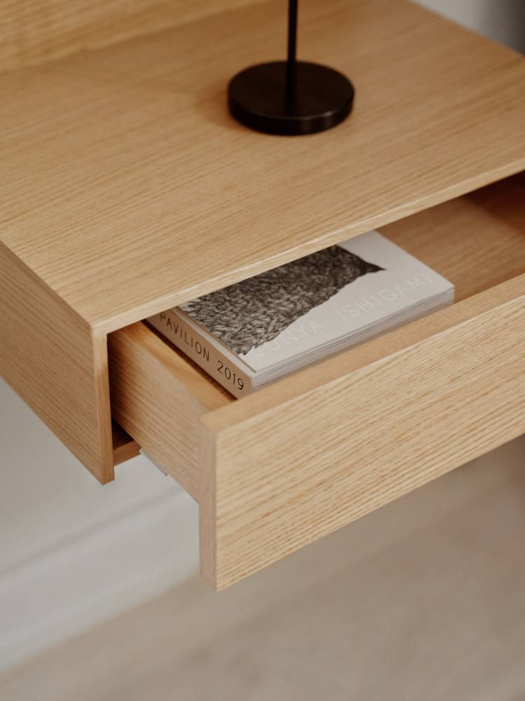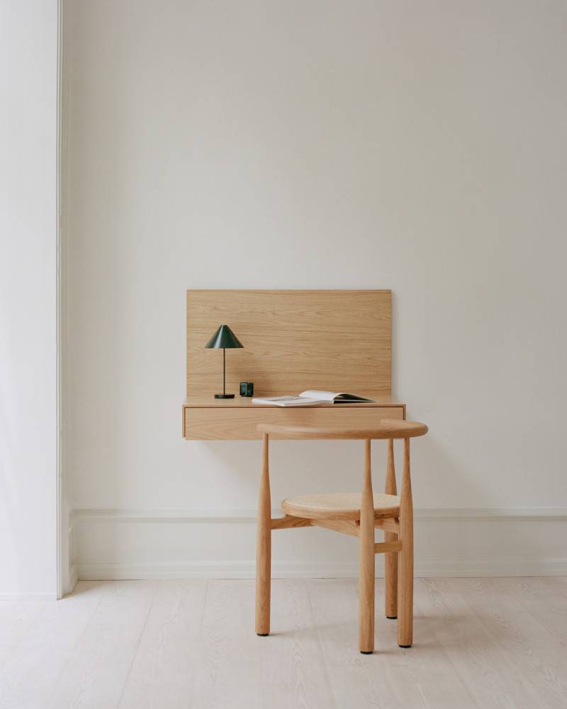 Tanan perusajatus rakentuu puupintojen kohtaamiseen. Vaakasuora taso muodostaa alustan esineille, kun taas pystysuora pinta kehystää ja luo rauhallisen taustan. Lopputulos on harmoninen ja ajaton kokonaisuus, joka sopii niin kotiin kuin julkisiin tiloihin.