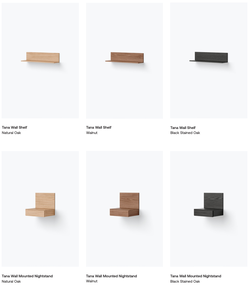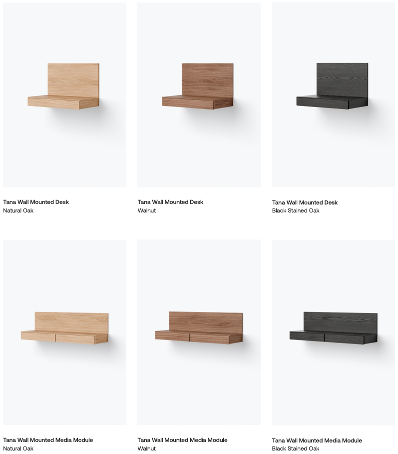 Tana on arkkitehti Rikke Rützou Arnvedin suunnittelema seinään kiinnitettävien kalusteiden sarja, jossa yhdistyvät selkeys, toiminnallisuus ja viimeistelty puusepäntyö. Sarjan kaikille tuotteille on ominaista rauhallinen ja yksinkertainen ilme ilman näkyviä vetimiä tai kiinnikkeitä. Suorat linjat ja puhtaat pinnat saavat olla pääosassa, jolloin kalusteet sulautuvat osaksi tilaa luonnollisesti.