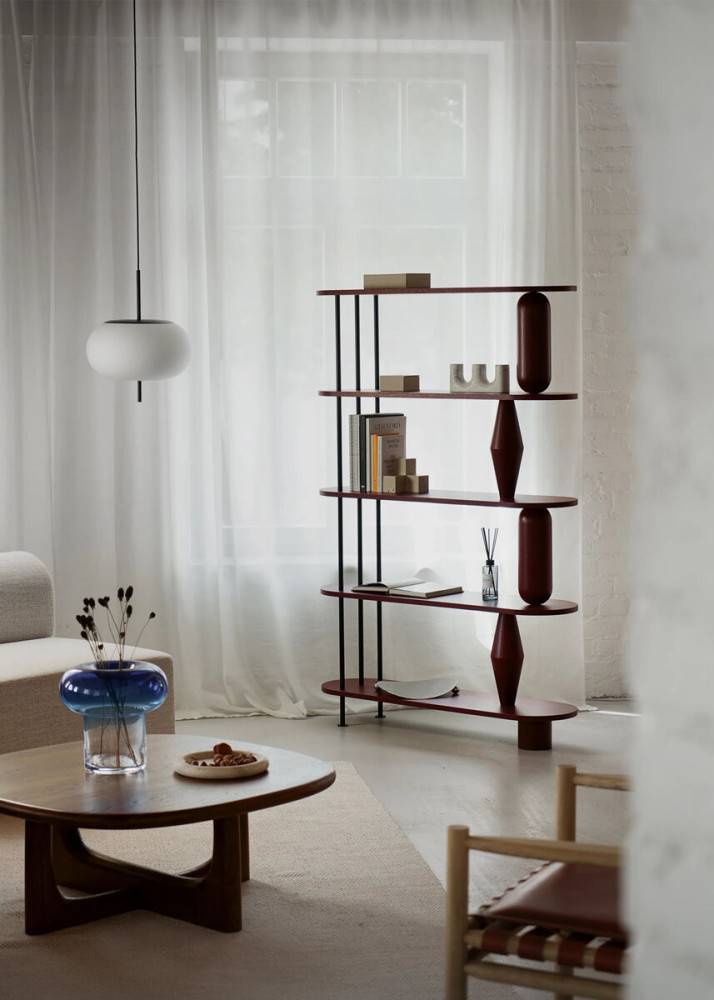 TAMO Vazoo on massiivipuinen kirjahylly, jonka tunnusomainen ilme muodostuu sorvatuista, maljakkoa muistuttavista tukielementeistä. Rakenteessa yhdistyvät massiivitammi ja terästangot, jotka tuovat kalusteeseen sekä tukevuutta että visuaalista keveyttä. Vazoo soveltuu kirjahyllyksi olohuoneisiin, työtiloihin, auloihin sekä muihin julkisiin ja puolijulkisiin sisätiloihin.