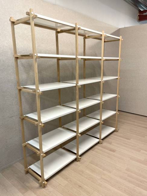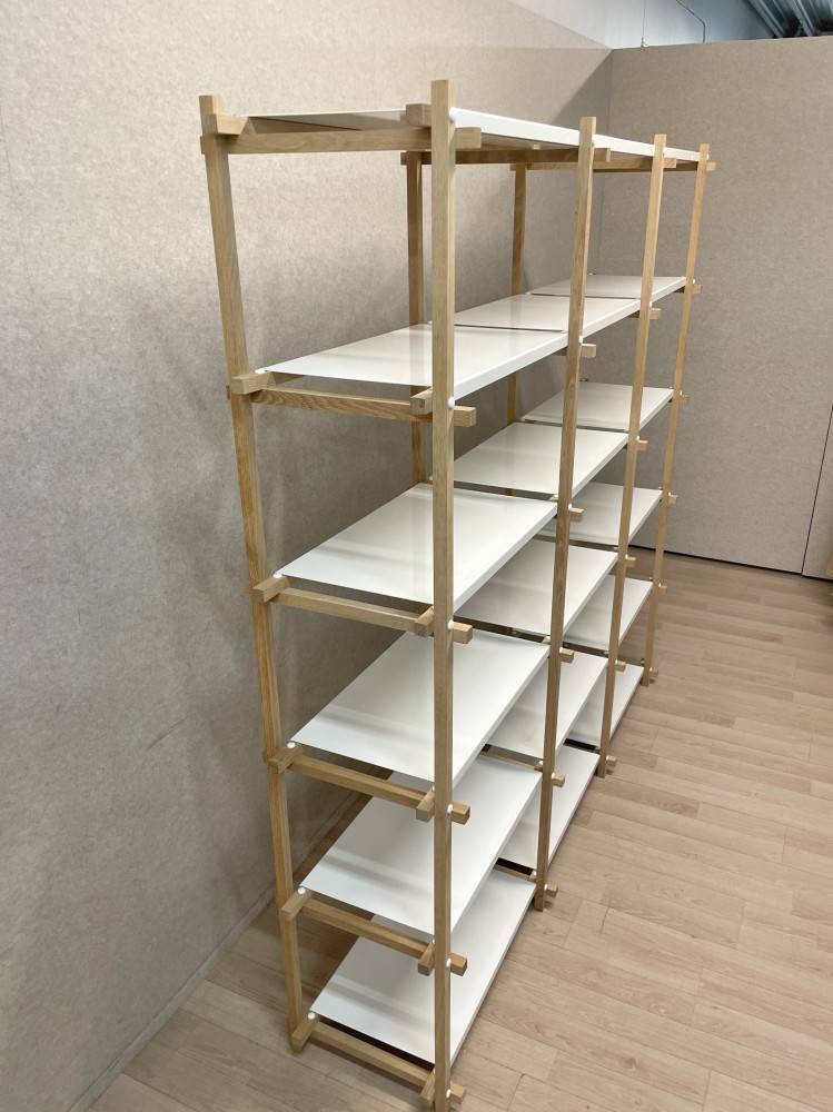 HAY Woody 2.0 hyllykkö – saippuoitu tammi / valkoiset teräshyllyt