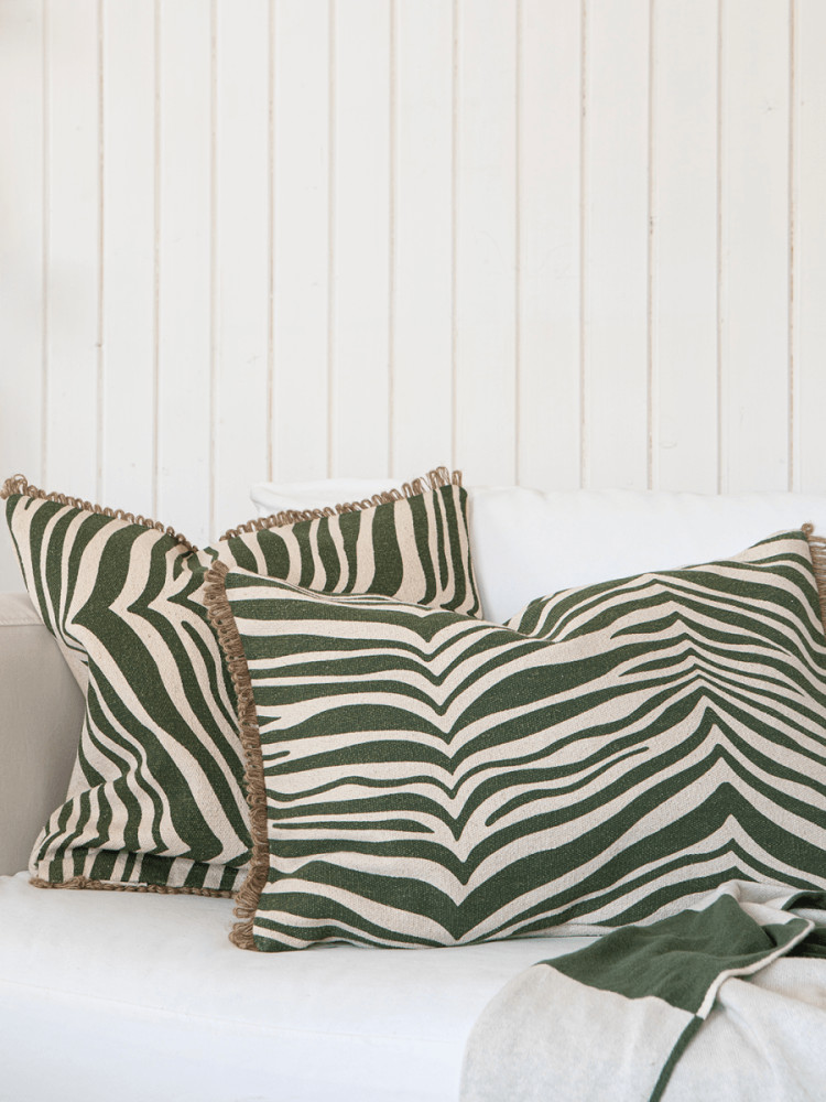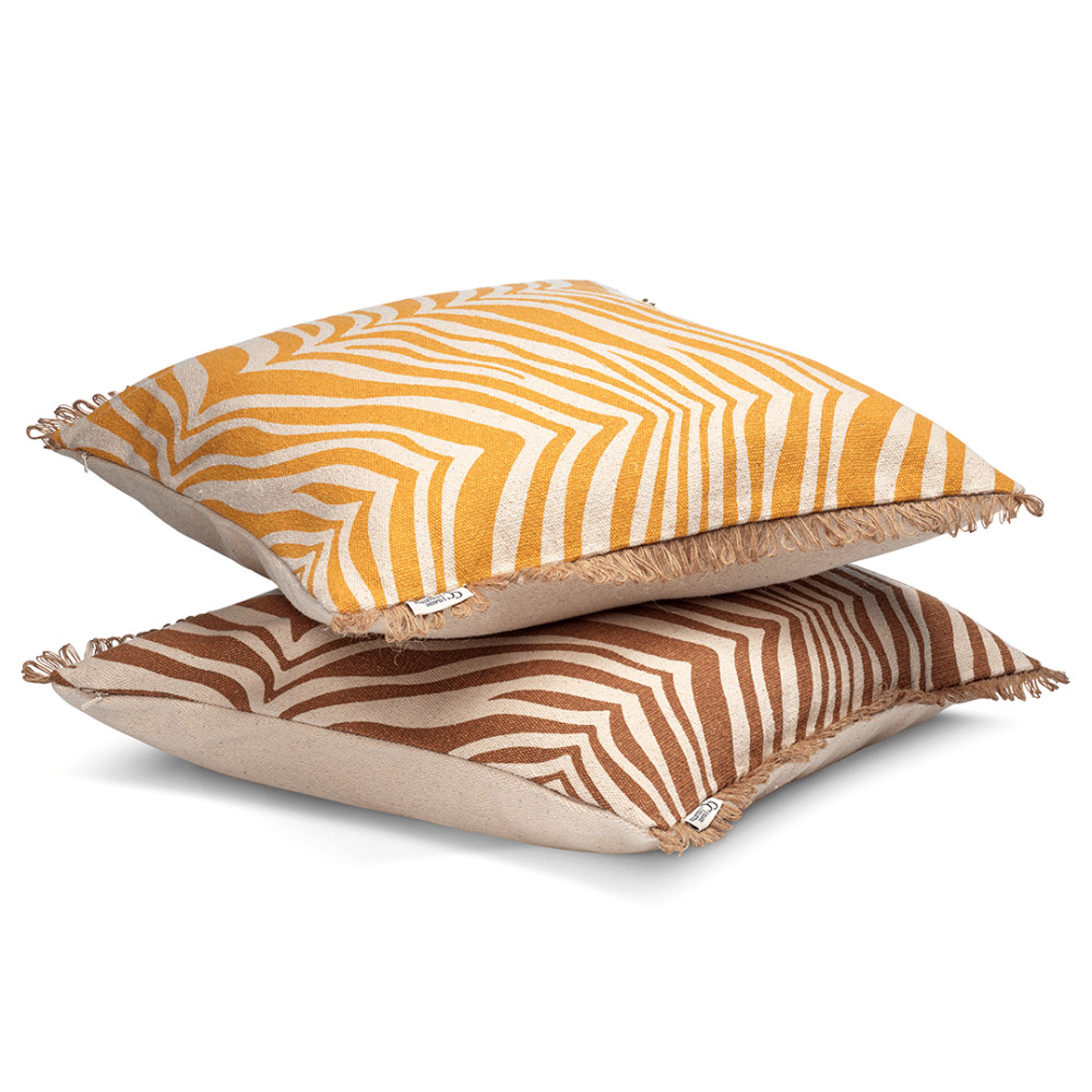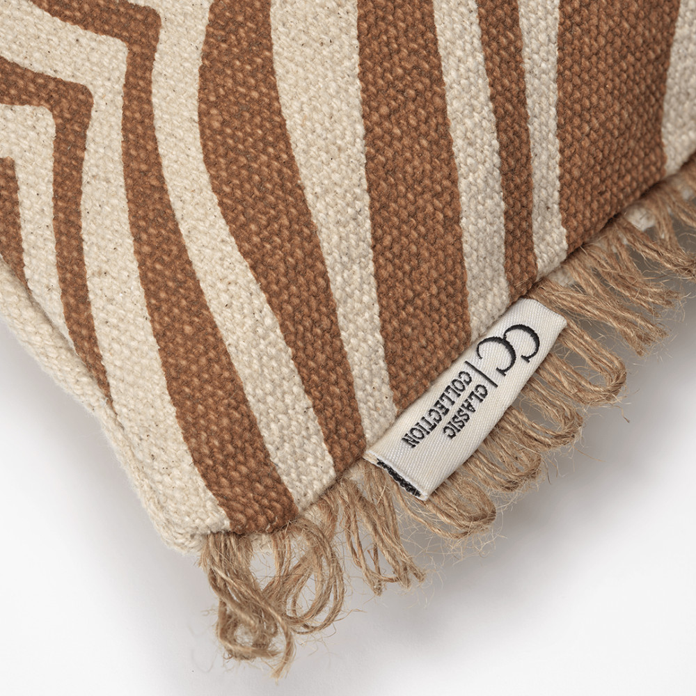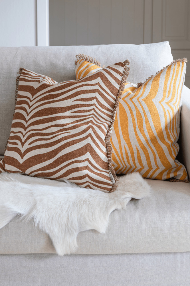 Classic Collection Zebra sisustustyyny tuo tilaan ajattoman ja näyttävän ilmeen klassisen seeprakuvion ansiosta. Tyyny on valmistettu pehmeästä 100 % puuvillasta ja viimeistelty luonnollisella juuttireunuksella, joka korostaa tuotteen käsityömäistä ja laadukasta ilmettä. Etupuolella on käsinpainettu zebrakuvio ja takapuoli on yksivärinen, mikä tekee tyynystä helpon yhdistää erilaisiin sisustustyyleihin.