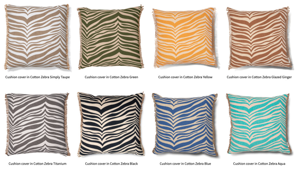Zebra tyyny on saatavilla useissa väreissä ja koossa, mikä mahdollistaa yhtenäisen tai kerroksellisen kokonaisuuden luomisen sohvalle, nojatuoliin tai sängylle.