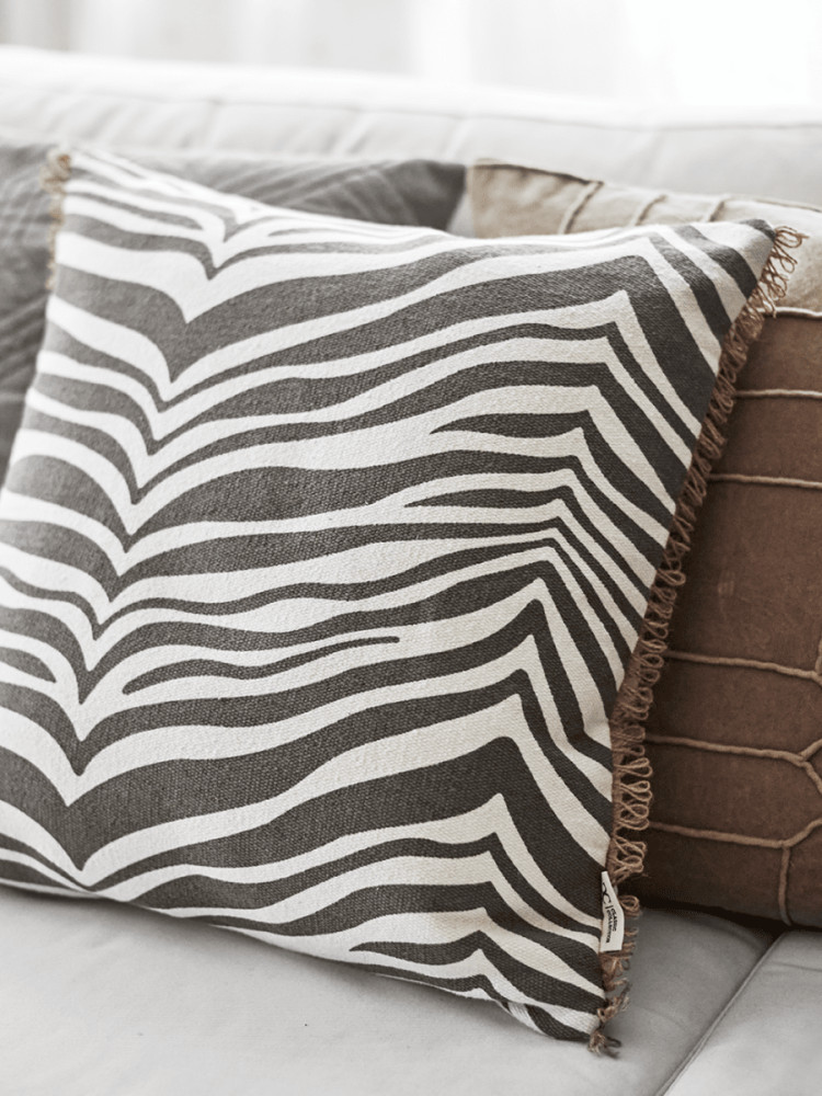Classic Collection Zebra sisustustyyny tuo tilaan ajattoman ja näyttävän ilmeen klassisen seeprakuvion ansiosta. Tyyny on valmistettu pehmeästä 100 % puuvillasta ja viimeistelty luonnollisella juuttireunuksella, joka korostaa tuotteen käsityömäistä ja laadukasta ilmettä. Etupuolella on käsinpainettu zebrakuvio ja takapuoli on yksivärinen, mikä tekee tyynystä helpon yhdistää erilaisiin sisustustyyleihin.