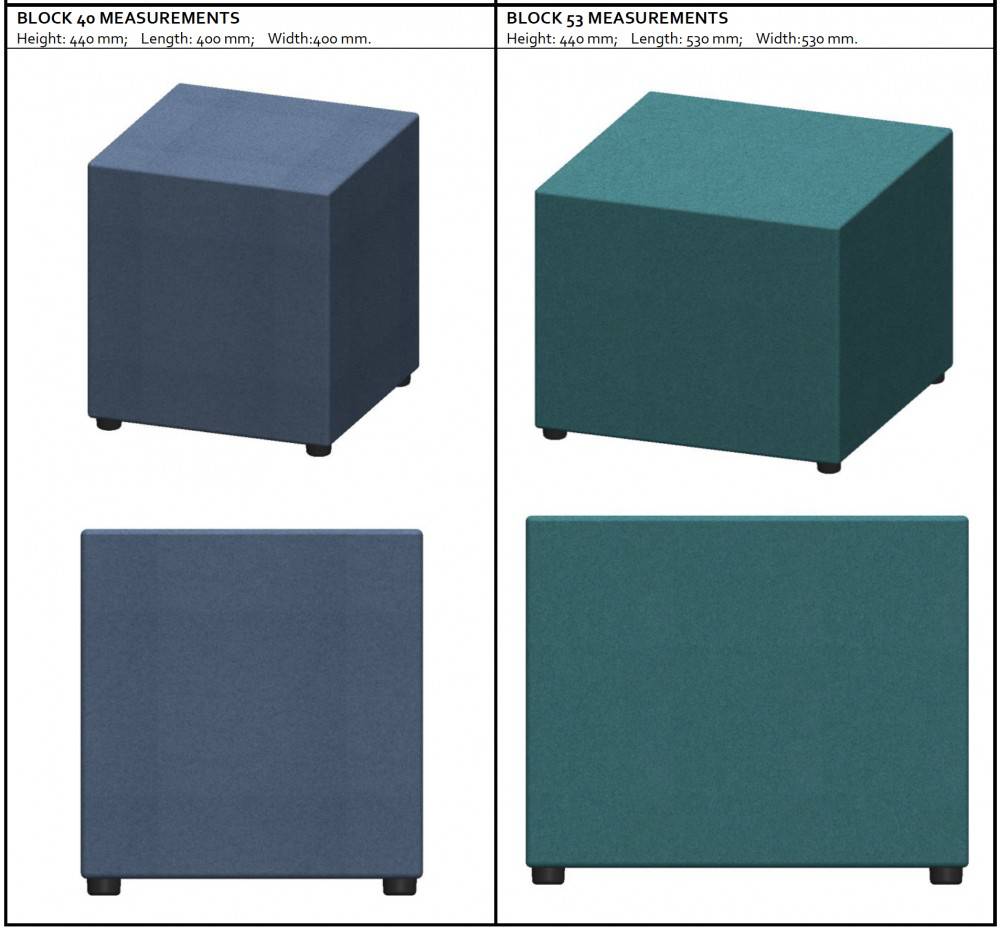 BLOCK on helposti liikuteltava ja hauska istuin. Sitä on saatavana kahdessa eri koossa. Istuimen alla on muoviset tassut. Verhoilu on saatavilla usealla eri värillä.