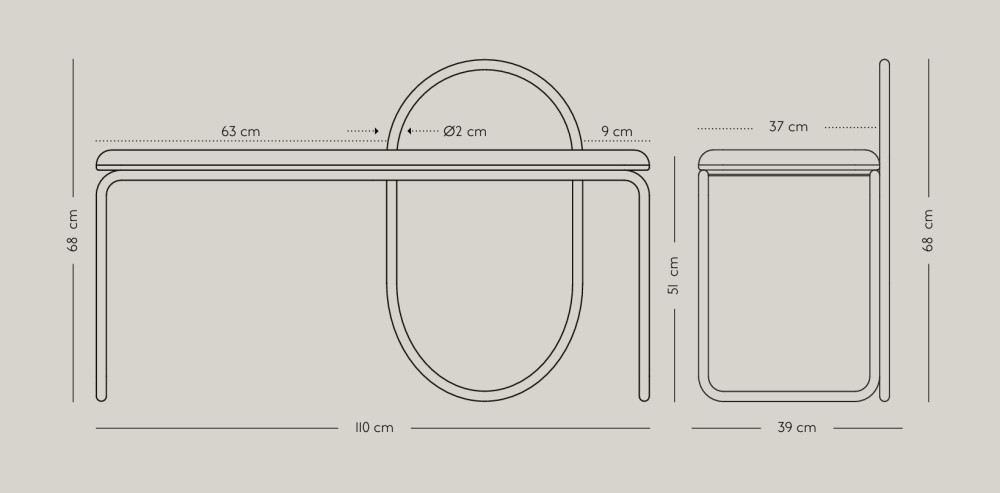 Mitat: leveys 110, syvyys 39 ja korkeus 68 cm