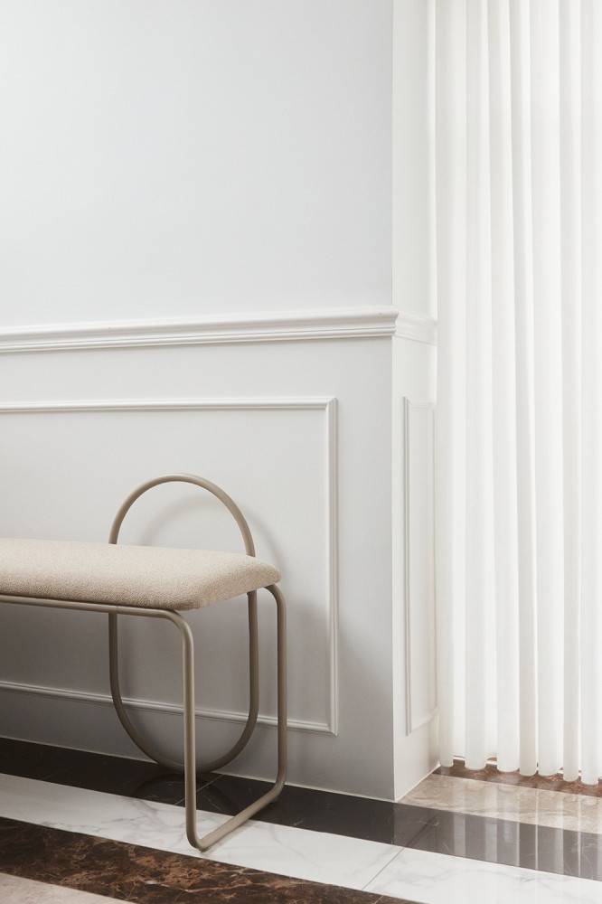 AYTM ANGUI on tyylikäs ja ajaton penkki, joka soveltuu hyvin esimerkiksi eteistiloihin tai auloihin. Verhoiltu Gabriel Grain Bouclé kankaalla, saatavissa 5 eri sävyssä.