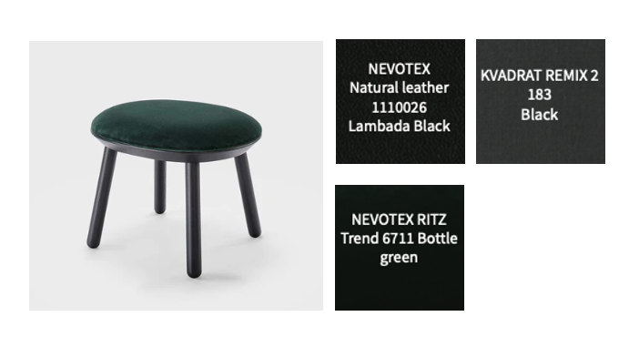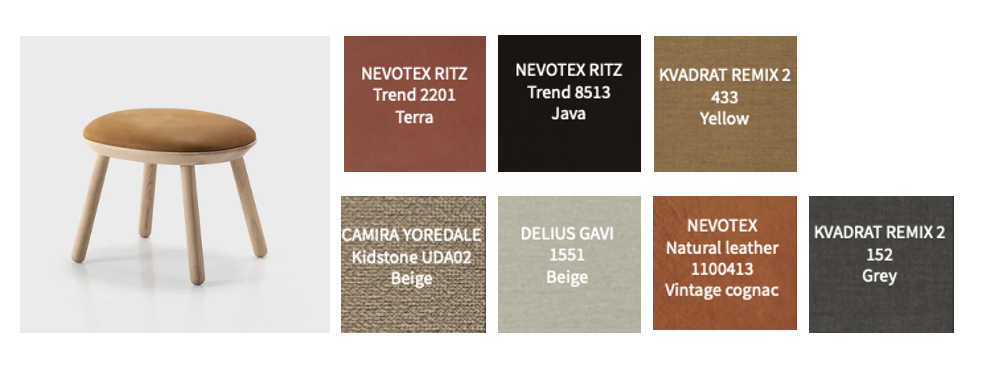 - Nevotex Ritz Trend: velour (83% puuvilla/9% modaali/8% polyesteri), Kvadrat Remix 2: (90% villa/10% nylon), Nevotex nahka