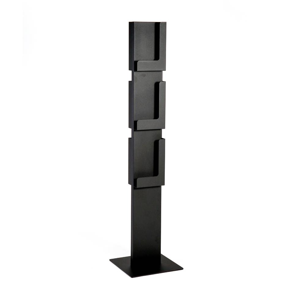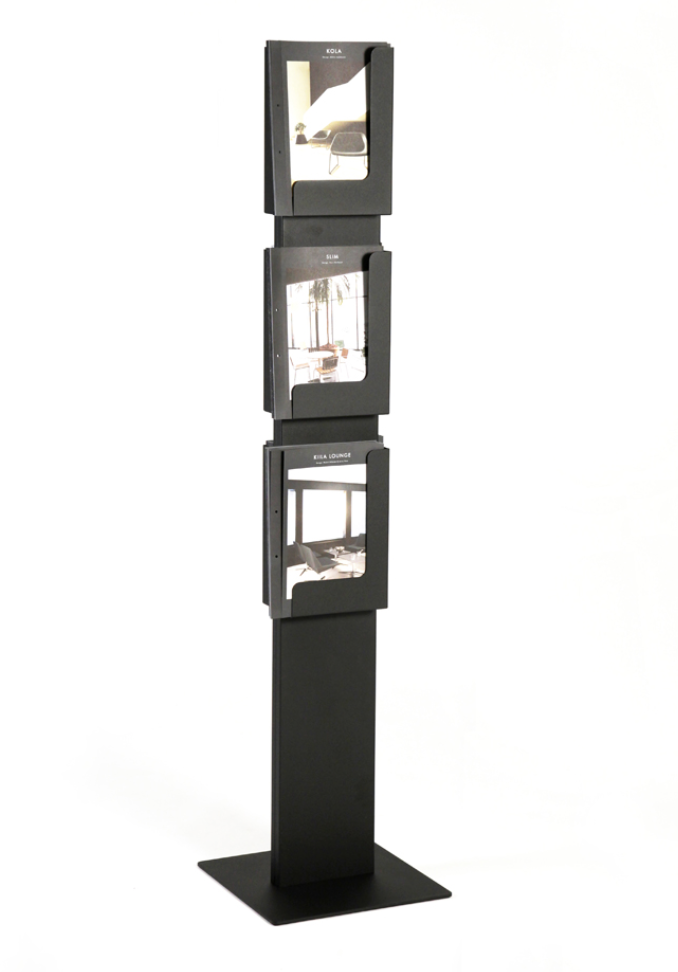 INNO Floor AD-Case esiteteline on minimalistinen ja tyylikäs. Esitetelineessä on 6 paikkaa esitteille pystyasennossa. Materiaalina epoksipinnoitettu teräs. Värivaihtoehtoina mattamusta, harmaa tai kiiltävä valkoinen (RAL9016).