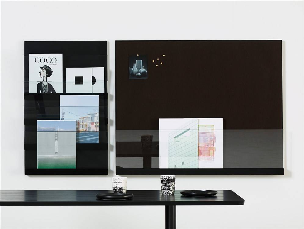 Esitetelineissä käytetään vakiona karkaistua kirkasta lasia. Lasikorkeudet ovat 32 mm, 150 mm (A5) ja 230 mm (A4) mallista riippuen. Plexilasi on saatavana tilauksesta. Paneeliversioissa taustaksi voidaan valita myös magneettinen whiteboard, kangaspintainen ilmoitustaulu tai peili.