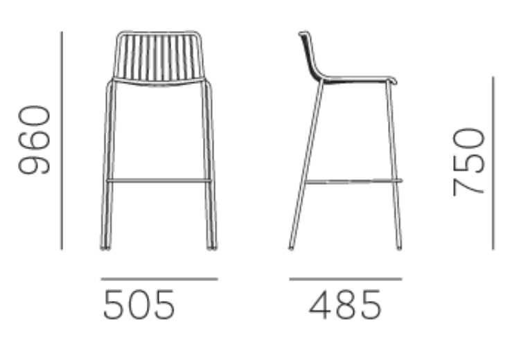 PEDRALI NOLITA on tyylikäs baarituoli. Tuoli on saatavissa kahdeksassa eri värissä.
