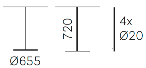 Nelijalkaiseen pöytään on saatavilla sekä pyöreitä että neliön mallisia pöytälevyjä.