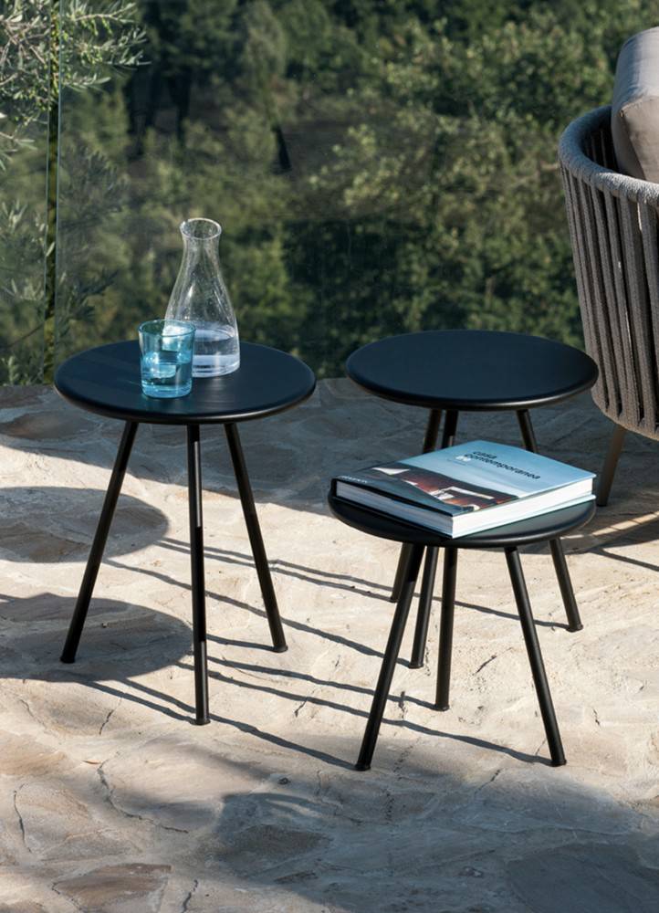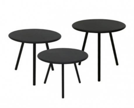 VERMOBIL DAISY sohvapöytä sarja sisältää kolme pöytää eri korkeuksilla. Kannet ovat samaa kokoa.