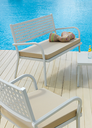 Pehmuste: 100% värjättyä akryyliä. Paino: 280 gr / m2. Viimeistely: Teflon, jossa on tahroja ja hometta estävä käsittely. Valonkestävyys: 7/8. Vesipestävä 30 °C.