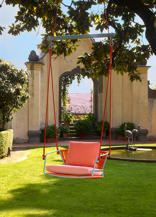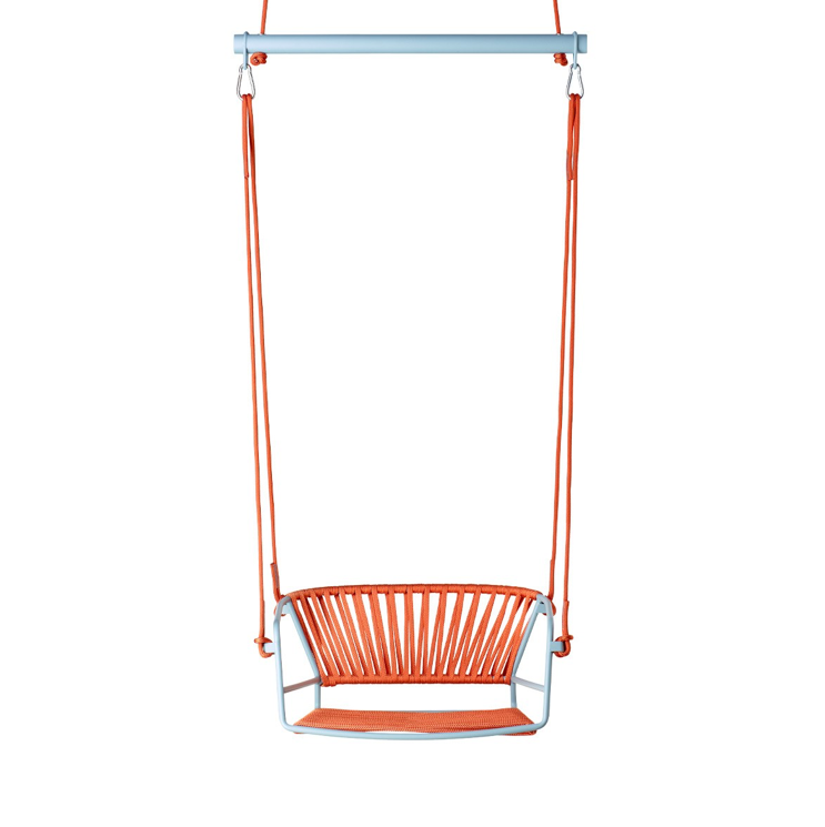 SCAB Lisa Swing istuinosa ja selkänoja on valmistettu kierrätetystä punoksesta, mikä on valmistettu 100% kierrätetystä polyesteristä. Se on värjätty, myrkytön, kestävä ja helppo ylläpitää. Runko maalattua putkiterästä. Kiinnitys yhdellä koukulla tai kaksi koukkua ja välipuu. Soveltuu sisä- ja ulkokäyttöön.