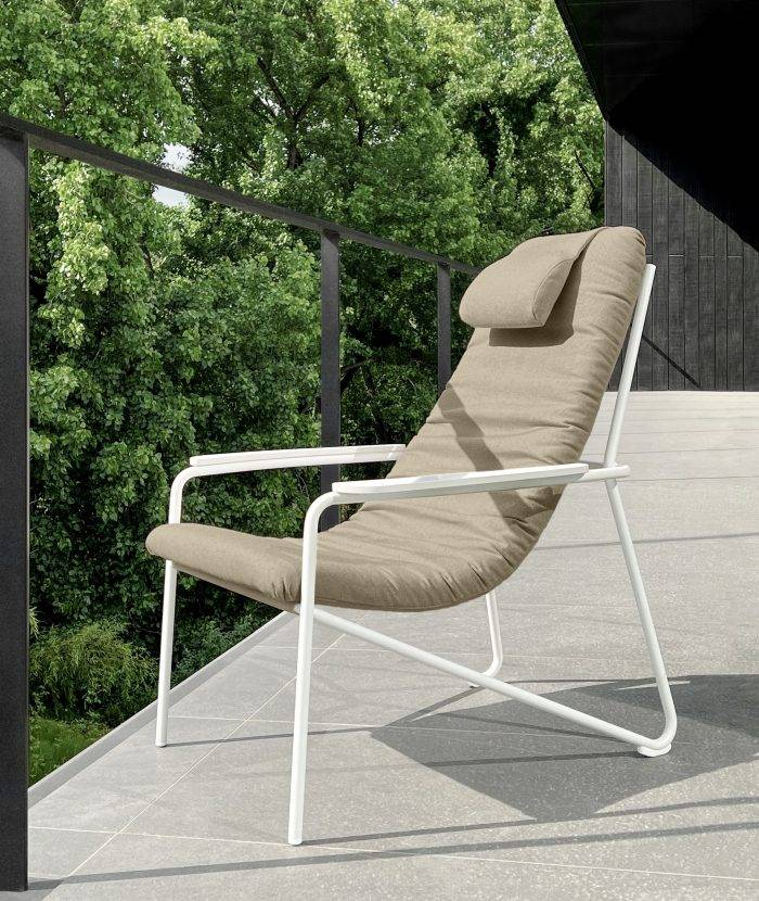 CALMA tuolissa on pitkä riippuvanmallinen istuin ja niskatuki, jotka luovat ihanan istuinmukavuuden istujalle kuin istujalle. Tuolissa on käytetty meriolosuhteisiin ja ulkokäyttöön ideaaleja materiaaleja, mm. vaahtomuovia, jonka läpi vesi valuu eikä jää lammikoksi tuolin pinnalle. Rungon ruostumaton teräs sekä käsinojien päällisten ja rahin sisuksen korkeapainelaminaatti ovat materiaaleja, jotka kestävät hyvin kosteutta, UV-säteilyä ja lämpötilan vaihteluita.