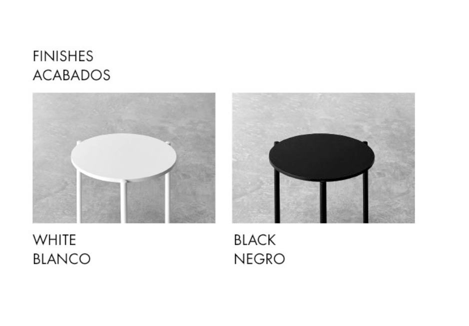 Alkaen hinta laskettu 40 cm pöytälevyllä ja 40 cm jaloilla. Väreinä musta ja valkoinen.