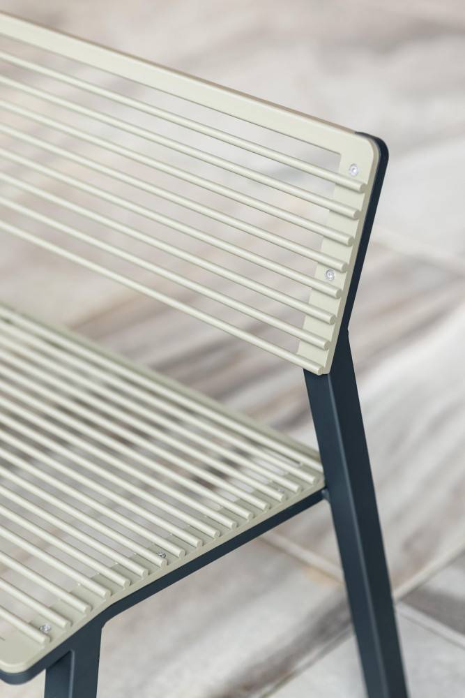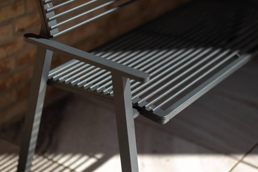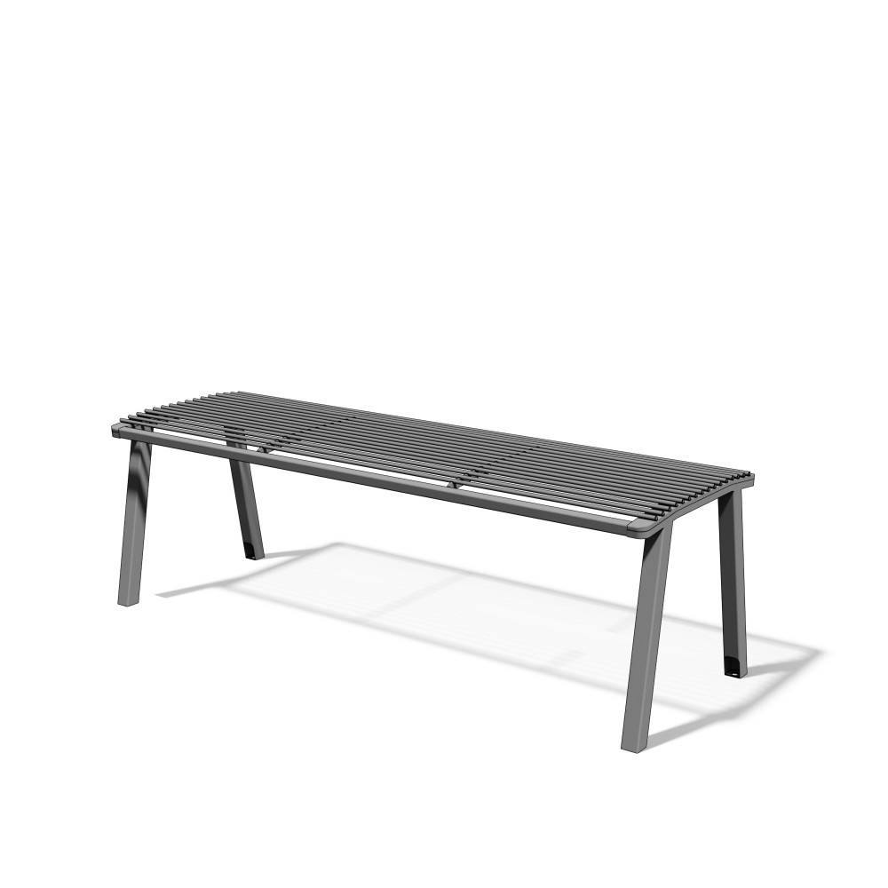 Täysmetallinen rakenne tekee tuotteesta lähes huoltovapaan. Istuinosat ja selkänojat on valmistettu hitsatusta teräksestä, joka koostuu suljetuista teräsprofiileista, teräslevyistä ja 10 mm paksuista terästangoista. Kaikki osat on suojattu korroosionestopinnoitteella ja viimeistelty jauhemaalauksella. Värisävy voidaan valita RAL-värikartan mukaisesti hienon mattapinnan kanssa, jolloin kaluste on helppo sovittaa osaksi ympäristöä.
