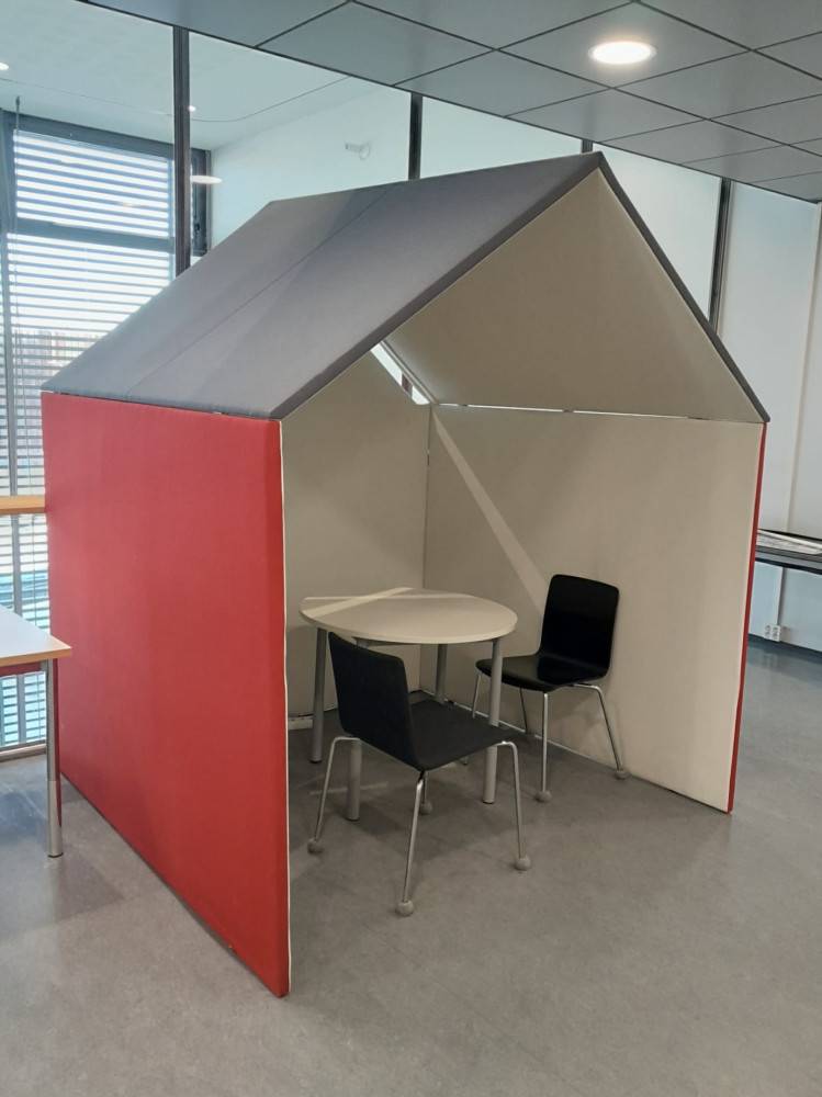 "Mökin" yksinkertaisiin suoriin linjoihin on saatu ideaa klassikkopeli Monopolista ja sen pelinappuloista, jotka tarjoavat suositulle ja kätevälle "huone huoneen sisällä" -konseptille ajattomat muodot. The Hut sopii moneen tarkoitukseen: yhden hengen työtilaksi, pieneksi tapaamispaikaksi tai rentoutumistilaksi yhdessä