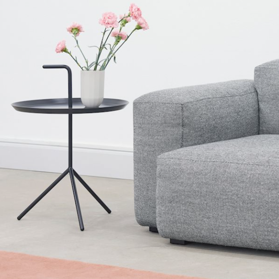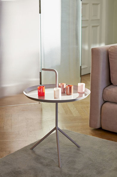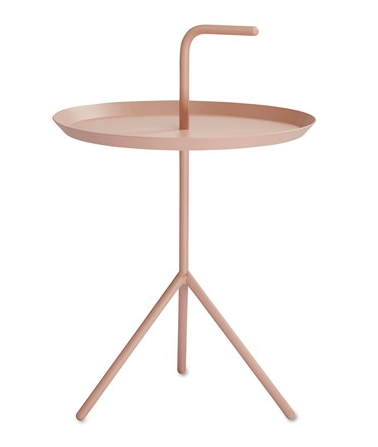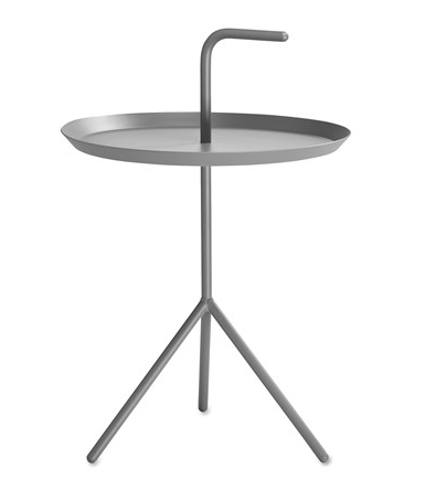 HAY:n Thomas Bentzenin kannettava pikkupöytä on osuvasti nimeltään DLM "Don´t leave me". Pöydässä kätevä kahva, jonka avulla metallipöytää voi helposti kuljettaa tilasta toiseen. Vaikka rakenne on kevyt ja kannettava on pöytä tukeva. Pöytää on saatavana kahdessa koossa DLM ja DLM XL.
