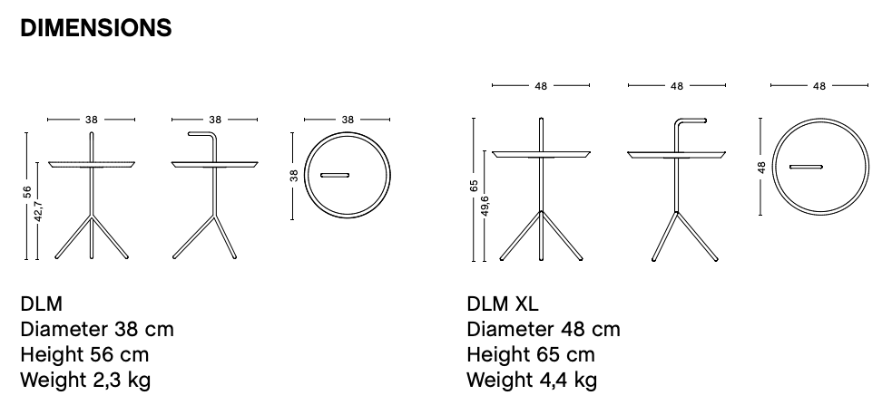 HAY DLM (Don’t Leave Me) on kevyt ja siirreltävä sivupöytä, jossa on integroitu kantokahva. Kompakti rakenne ja selkeä muotoilu tekevät siitä käytännöllisen ratkaisun erilaisiin tiloihin. Pöytä soveltuu aulatiloihin, lounge-alueille, toimistoihin ja koteihin.