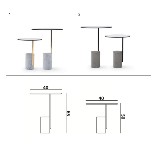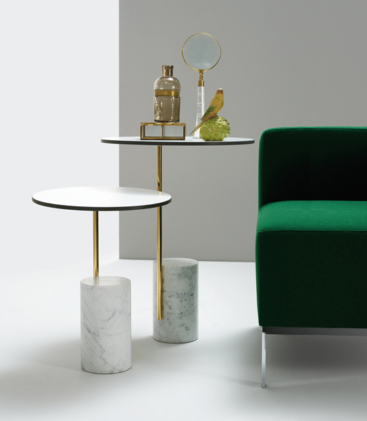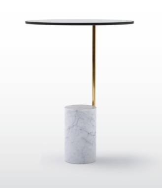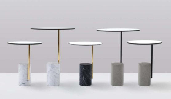 QUINTI XAXA pöydät ovat koristeellisia ja niissä on kaunis muotoilu. Sylinterimäinen pohja valkoista Carrara marmoria, mustaa Marguina marmoria tai sementtiä. Runko maalattu (valkoinen tai musta) tai kullanväriseksi pinnoitettu teräs.