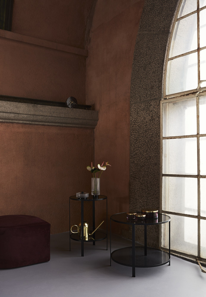 AYTM FUMI on tyylikäs pöytä, jonka pöytätasot ovat lasia. FUMI pöytää on saatavilla kolmessa eri koossa.