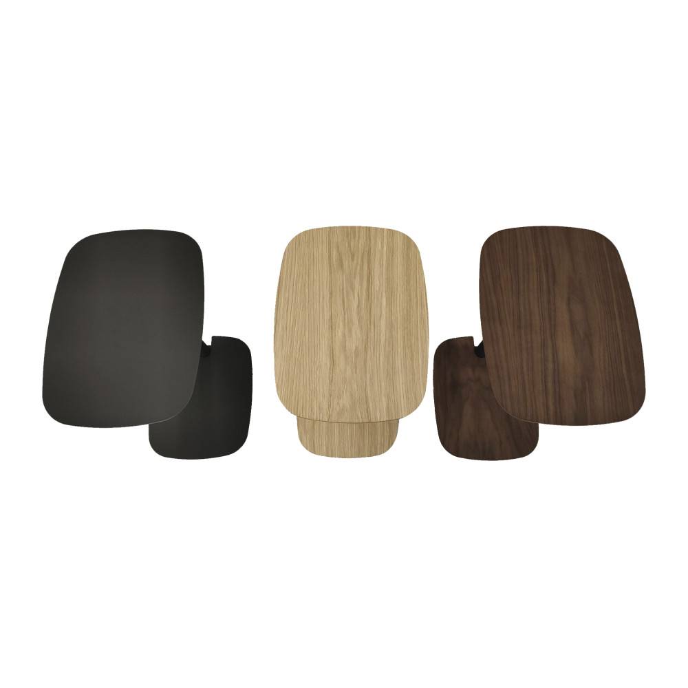 Pöytätason ja lattiaa vasten olevan jalustan värivaihtoehdot: tammiviilu, pähkinäviilu tai musta Fenix korkeapainelaminaatti (sormenjälkiä hylkivä)