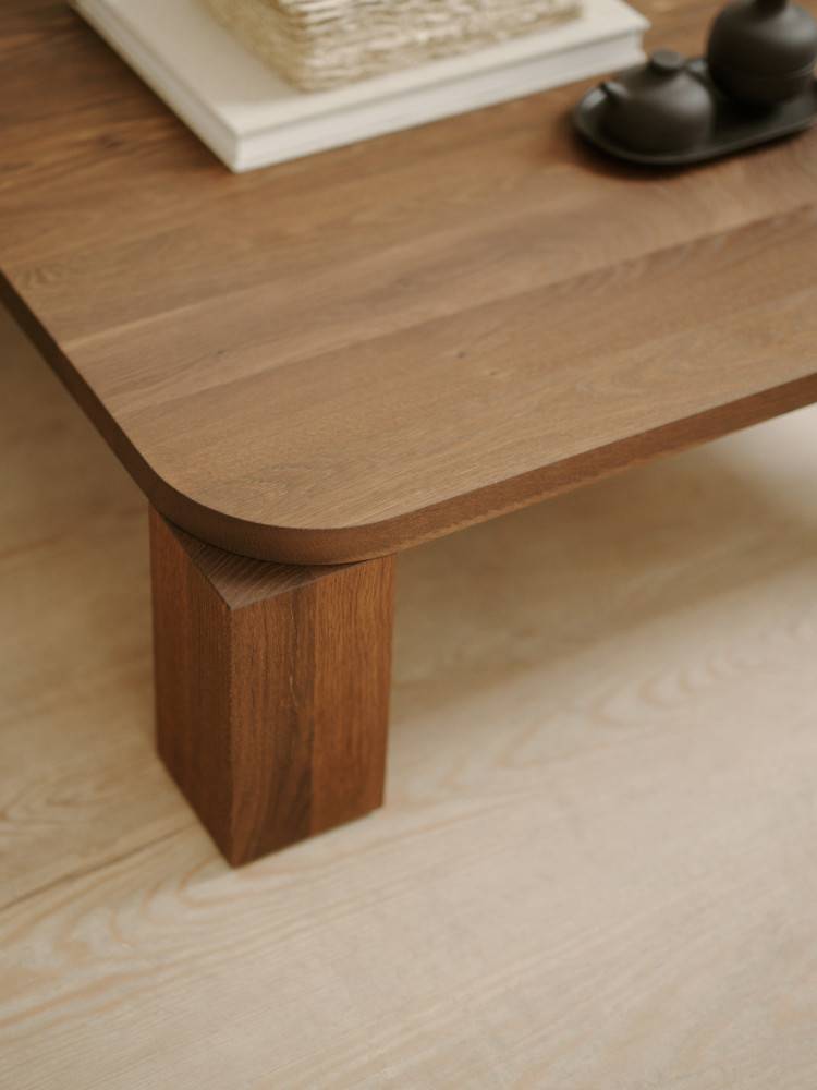 Atlas-sohvapöydän nimi viittaa kreikkalaisen mytologian hahmoon Atlakseen, jonka tehtävänä oli kannatella taivasta harteillaan. Samalla tavalla pöydän jykevät jalat tukevat leveää pöytätasoa, ja kokonaisuus henkii voimaa ja vakautta. Jalkojen ja kannen välinen suhde on muotoilun keskeinen osa: ne korostavat toistensa mittasuhteita ja luovat pöydälle vahvan ja rauhallisen olemuksen.