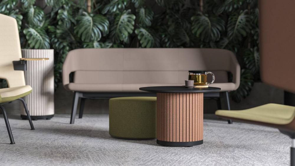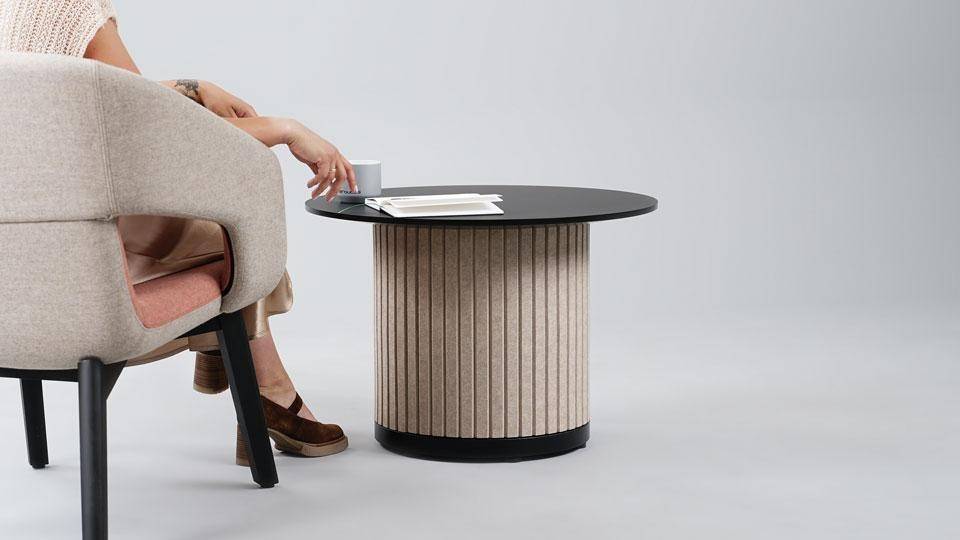 PARTHOS on sohvapöytä, joka soveltuu toimistojen aulatiloihin, lounge-alueille ja muihin julkisiin oleskeluympäristöihin. Pöydän PET-huopaverhoiltu pylväsrakenne tuo kalusteeseen akustisia ominaisuuksia, jotka tukevat miellyttävämpää ääniympäristöä tiloissa, joissa oleskellaan ja keskustellaan.