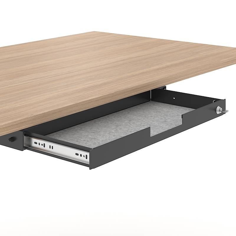 Narbutaksen lukittava metallilaatikko on käytännöllinen ratkaisu kannettavan tietokoneen ja henkilökohtaisten tavaroiden turvalliseen säilytykseen työpisteessä. Laatikko asennetaan pöytälevyn alapuolelle ruuvaamalla, eikä se vie tilaa työpinnalta.