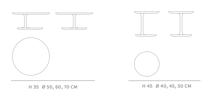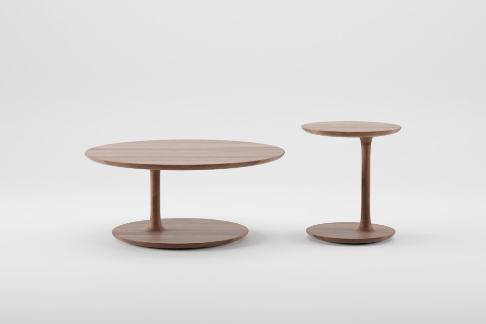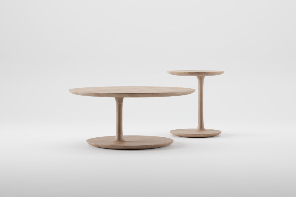 Jokainen pöytä koostuu kahdesta massiivipuisesta levystä, joista ylempi on sileä ja alempi kaareva. Ne yhdistyvät pystyelementin kautta epäsymmetrisesti, mikä tuo rakenteeseen luonnetta ja orgaanista keveyttä. Yhdessä tai erikseen käytettyinä Bloop-pöydät tuovat tilaan harmonian ja luonnollisen estetiikan, ja niiden pyöreät muodot kutsuvat rentoon yhdessäoloon.