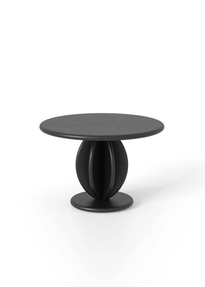 Pöytä valmistetaan massiivipuusta, vaihtoehtoina tammi tai saarni. Pinta on viimeistelty lakalla, joka suojaa puupintaa ja korostaa materiaalin luonnollista rakennetta. Jalustan veistetty rakenne muodostaa pöydälle tukevan mutta visuaalisesti kevyen perustan.