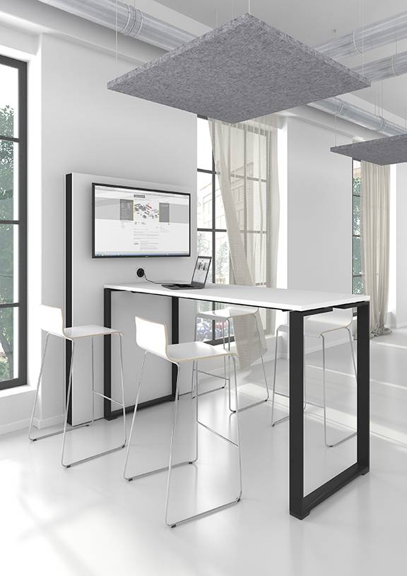 NARBUTAKSEN MEDIA seisomakorkuinen pöytä on kätevä tapa palaveerata. Siinä yhdistyvät kätevästi tämän päivän teknologia ja palaverin paikka.