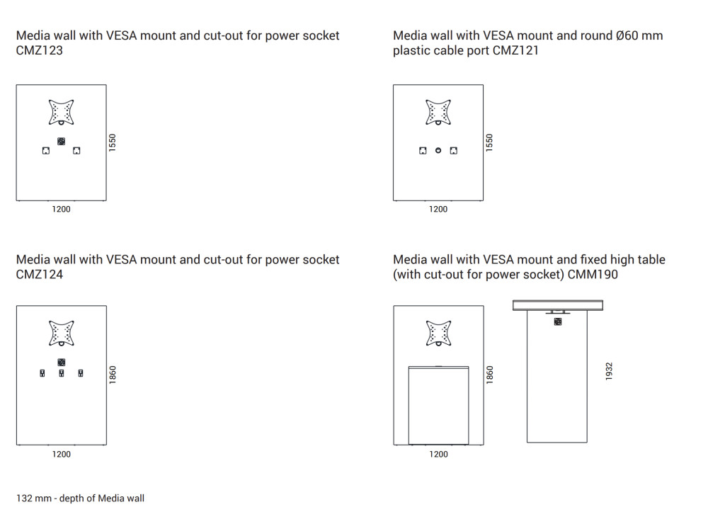 MEDIA seinässä on VESA standardin mukainen pidike näytölle ja valittavissa erilaisia vaihtoehtoja johtojen järjestelylle. Värivaihtoehtoja on useita.