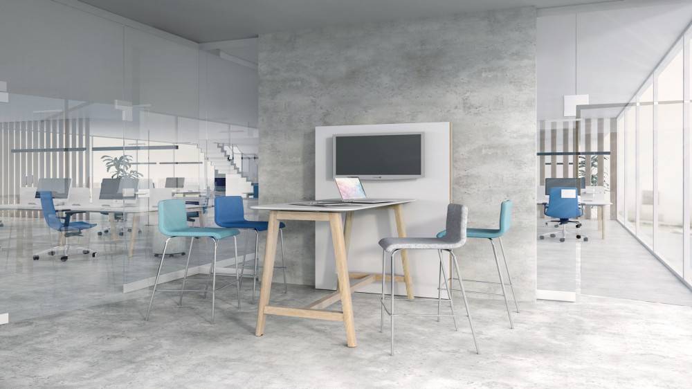 Pöytää saa myös matalapainelaminaattilevyllä. Matalapainelaminaatti riittää toimistokäyttöön. Sopii hyvin käytettäväksi esim. neuvottelu- ja aulapöydissä.