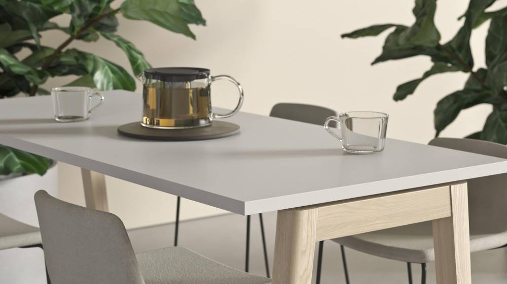 Pöytälevyn materiaali ja väri: korkeapainelaminaatti, katso värivaihtoehdot värikartasta (reuna kannen sävyisenä, valkoiseen saatavilla myös musta reuna)