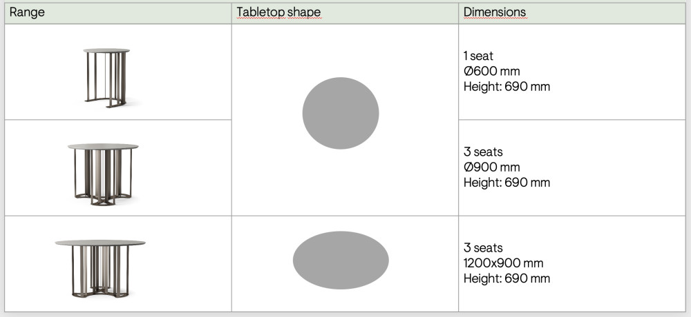 Pöytien kokovaihtoehdot: