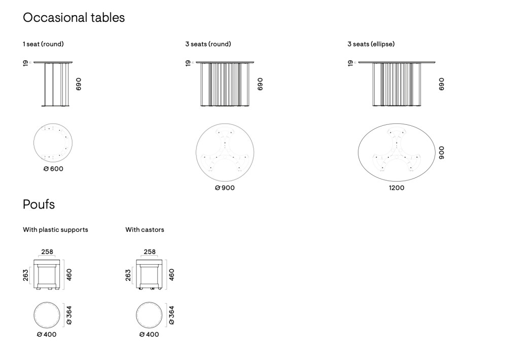 - pyöreä halk. 60 cm, kork. 69 cm (yhdelle rahille)