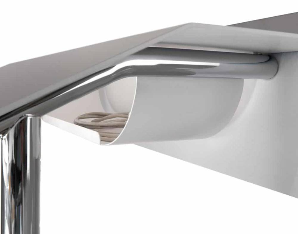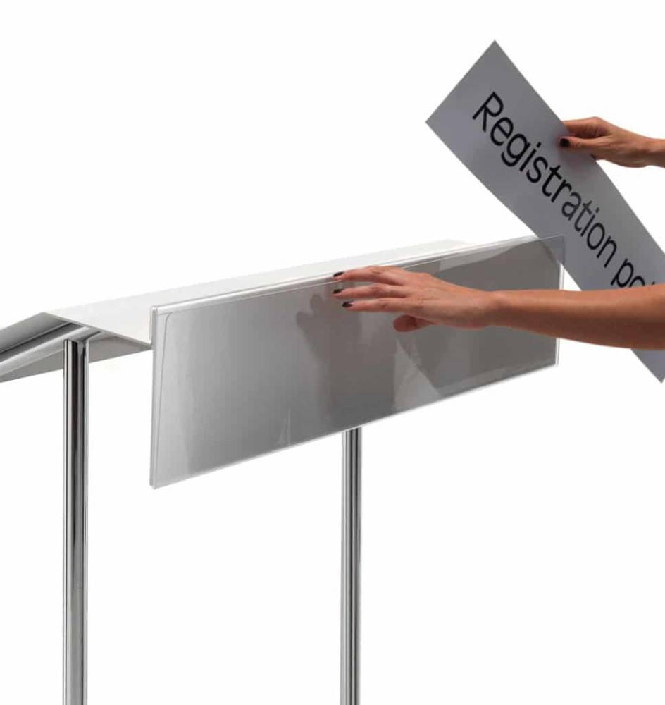 Lisävarusteena tilattavissa metallinen johtokouru sisältäen 4 johtopidikettä sekä läpinäkyvä akryylikotelo, johon voi vaihtaa esim. tilaisuuden nimen.