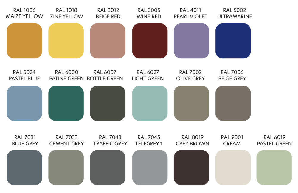Vakiovärit rungolle: musta RAL 9005, valkoinen RAL 9016