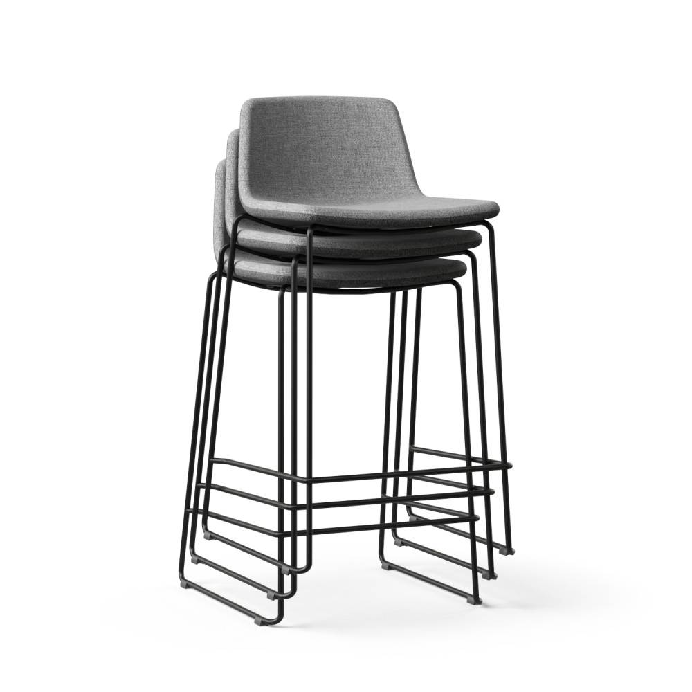 Baarituoli voi olla verhoiltuna kokonaan samalla kankaalla tai nahalla. Kontrastia voidaan luoda erivärisellä sisä- ja ulkopuolella tai yhdistämällä kangasta ja nahkaa (Huom! Sisäpuoli nahalla ja ulkopuoli kankaalla ei saatavilla). Ilmoitathan halutut verhoilut tarjouspyynnössä.