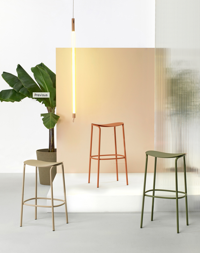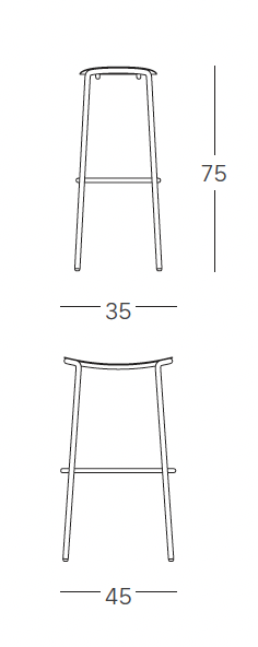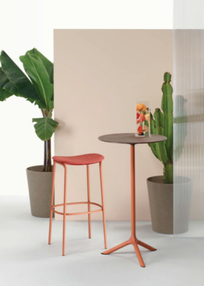 SCAB TRICK baarituolin muotoilu on minimalistinen, ilmeikäs ja iloinen. Sarjassa on kokonaan metallinen sekä istuin puuta ja istuin verhoiltuna. Baarituolin korkeudet 65 cm tai 75 cm.