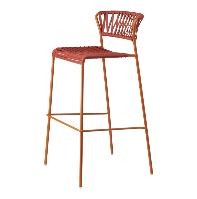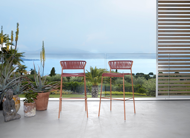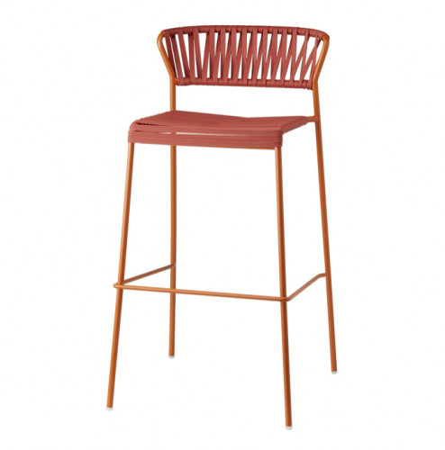 SCAB Lisa Club pinottava baarituoli soveltuu sisä- ja ulkokäyttöön. PVC:stä kudotut istuin- ja selkänoja tekevät tuolista kevyen näköisen ja tukevan istua. Lisa -mallisto henkii 50- ja 60-luvun sisustusta.