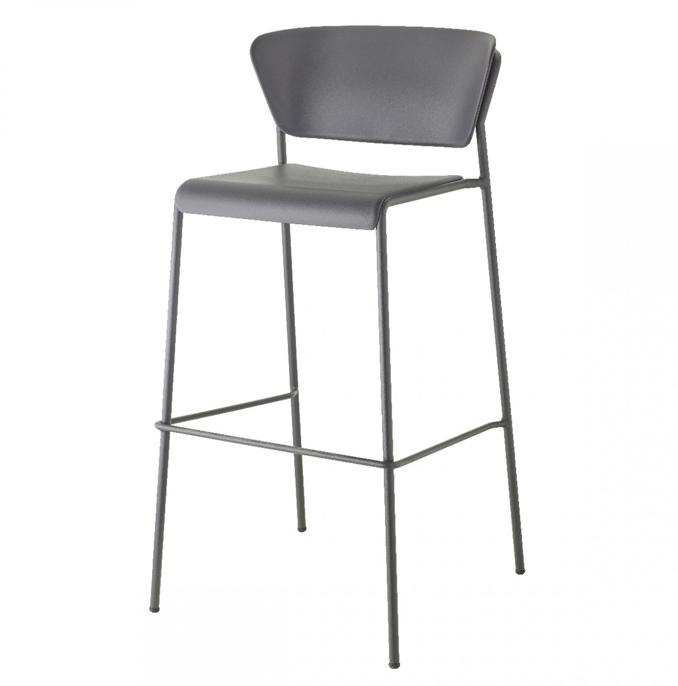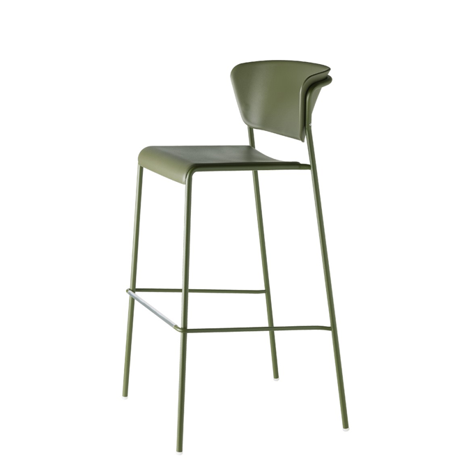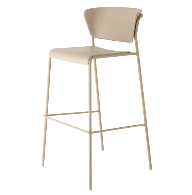 SCAB Lisa Technopolymer pinottava baarituoli on suunniteltu sisä- ja ulkokäyttöön. Metallinen runko ja istuinosa kierrätettyä muovia.