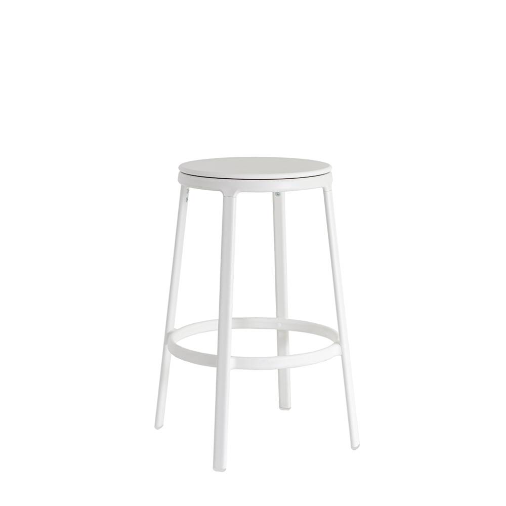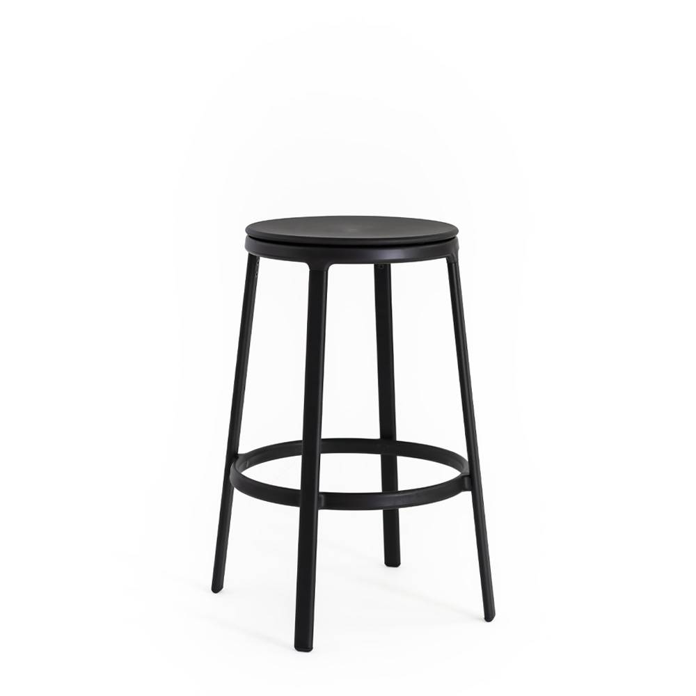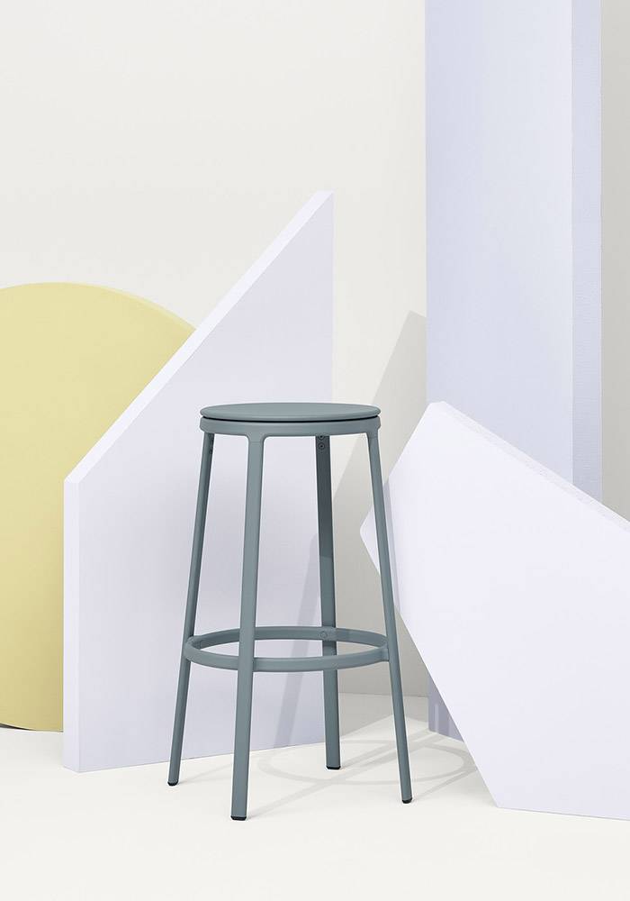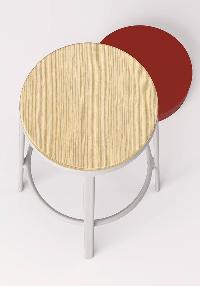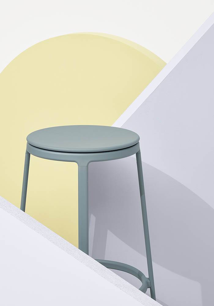 INFINITI ROUND&ROUND - Ensi silmäyksellä Round&Round näyttää klassiselta jakkaralta, jossa on neljä maalattua teräs jalkaa. Mutta muotojen yksinkertaisuus kätkee sisäänsä erikoisuuden: 100% kierrätysmuovista tai puusta valmistettu istuin, joka voidaan verhoilla, pyörii keskiakselin ympäri hienostuneen ja näkymättömän teknisen ratkaisun ansiosta. Siksi Round&Round on tyylikäs ja käytännöllinen tuoli, joka sopii kaikkiin tiloihin.